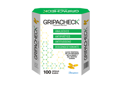 GRIPACHECK® Paracetamol 325 mg + Bromhidrato de Dextrometorfano 10 mg + Clorhidrato de Fenilefrina 5mgCápsulas blandasCaja x 100 unds.R.S. EE-06357Ver másInserto Navegación de entradas << Anterior Siguiente >>