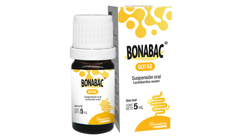 BONABAC® se presenta en caja de cartón conteniendo un frasco de vidrio tipo III color ámbar, con tapa y tapón gotero de PEAD blanco x 5 mL de suspensión oral.